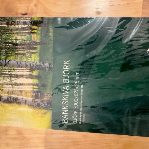 Säljer en helt ny bänkskiva avsedd för köksö, inköpt i slutet av november. Skivan är i mycket fint skick, men det finns ett litet område med en utåtbuktning. För den händige bör detta gå att åtgärda, och med rätt verktyg kan skivan även sågas till i mindre skivor eller längder vid behov.