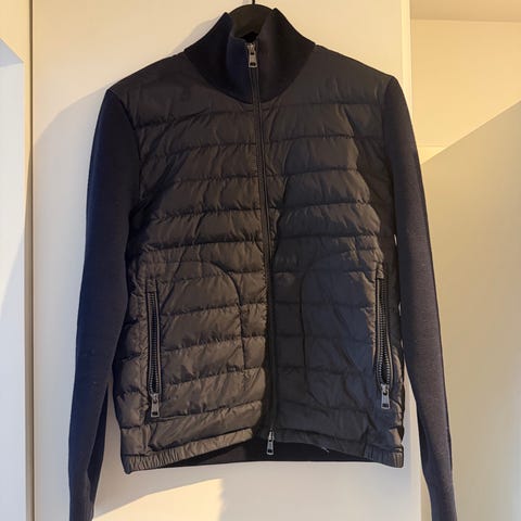 Moncler Jacka i storlek M, svart färg och tillverkad i polyester. Designad som en ytterjacka för herrar.