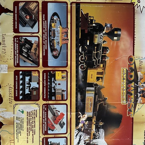 Färgglatt leksakståg i plast med tillbehör. Perfekt för barn.