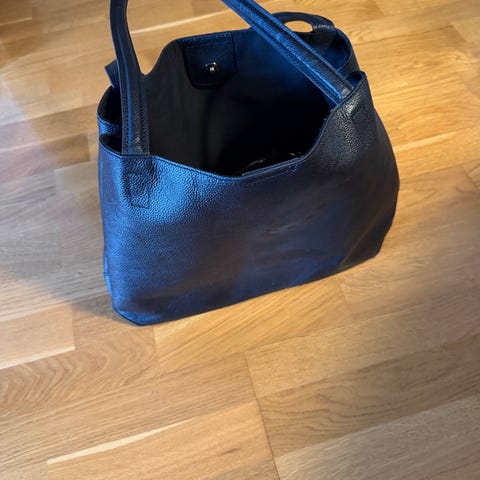 Skicket är bra, inga skador, blixtlåset fungerar, fodret är helt, det finns lite nötning i lädret längs med blixtlåset (bild 9). Mått 35 cm lång, 20 cm hög.