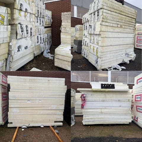 Vi får in : Cellplast, isolering, eps, finnfoam, sundolitt, benders, Markisolering, Grundisolering, Isolering grund, XPS men även mycket Virke, reglar, ytterpanel, osb, plywood, golv, isolering, stenull, glasull, takplåt, innerpanel