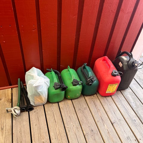 Tomdunkar 25 L använda endast en gång för miljöbensin . Godkända 10 år till för bränsle. Pris 25 kr st eller 5 st för 100 kr