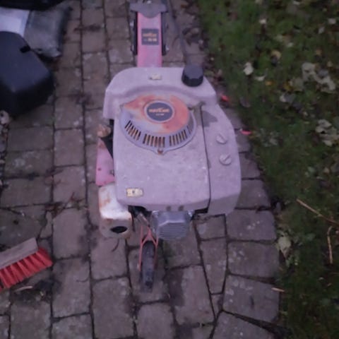 Stiga JB 30 jordfräs med Briggs & Stratton motor. Startar men går ojämnt. I behov av översyn av förgasaren gissar jag på. Drivningen fungerar ua. Finns mellan Osby och Vittsjö.