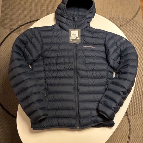 Peak Performance Helium Down Hood Jacket i storlek M, i färgen blå med svarta detaljer. Lätt dunjacka och är designad för att ge värme och komfort under kalla förhållanden.
