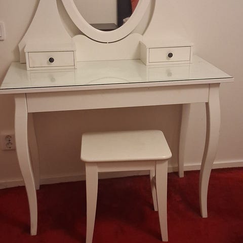Fint sminkbord/ skrivbord i grått. Inköpt på Mio. Nypris 1995kr