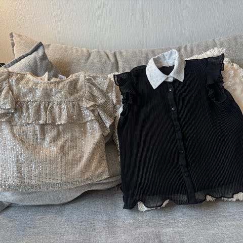 Svart tröja med paljetter och svarta leggings med skinnimitation på knä