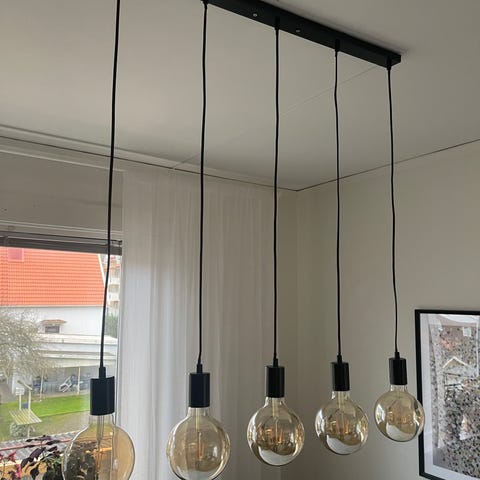 Upphängning och lampan 75 cm går att justera lite med öglor.