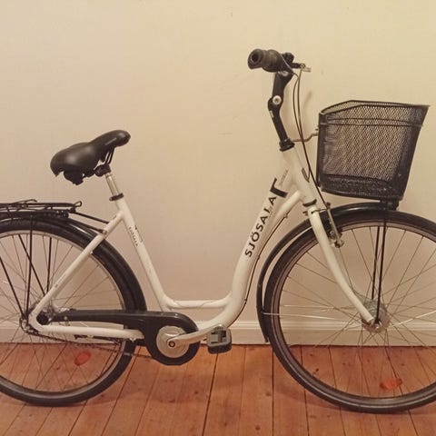 En enkel och smidig 3-växlad cykel som rullar på väldigt smidigt. Alla växlar fungerar, välpumpade däck, smörjd kejda, handbroms fram, pakethållare och stödpinne. Cykelsadeln går justera i höjd för den som behöver och cykeln är en fröjd att cykla på.