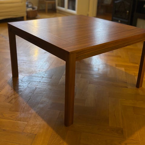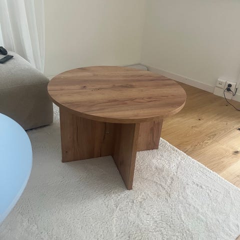 Bord Tablo från danska Norrman Copenhagen. Svart plastkomposit i skivan, tre runda ben. Snyggt! Vardagsslitet, lite ytliga o några få lite djupare repor men syns ganska lite på svart yta. Några små skador längs kanten.