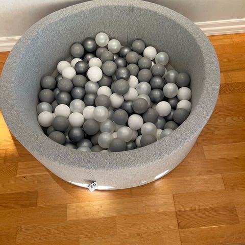 Jollyroom bollhav för barn i grå färg. Tillverkad av mjukt material för säker lek. Passar för småbarn och kan användas inomhus som en lekplats med bollar