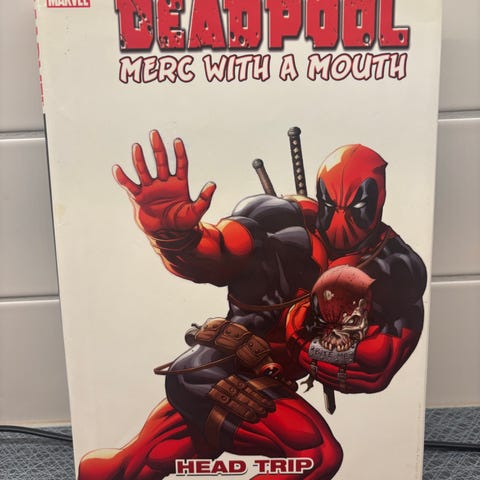 Deadpool Wade Wilson's War serietidning med flera illustrationer och berättelser. Serien innehåller Deadpool-karaktären i olika scener och handlingar.