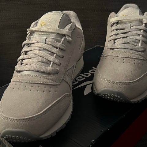 Säljer nu ett par helt nya Reebok Classic Leather skor i färgen chalk/white då jag beställde fel storlek. Det är storlek 44. Helt nya i sin förpackning. Detta är unisex och funkar fint för båda kön.