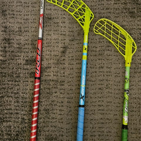 Hej säljer mina gamla innebandy klubbor då dom bara står tänker att dom kan komma till användning av nån annan. Det är 3 klubbor och ett klubb fodral och 2 par glasögon som följer med om du undra något är det bara att höra av dig. den orangea 85,5 den gråt handtag är 86 och den men blå handtag är 81,5