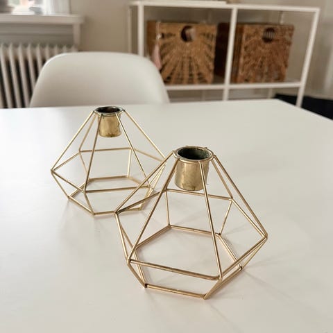 Lagerhaus dekorationsljushållare i guld och glas. Setet innehåller flera ljushållare i guld och klara glas, lämpliga för mindre ljus. Används för dekoration och belysning i hemmet.De 16 guldfärgade 160:- ! De 5 i genomskinligt glas 50:- ! Den lila 25:- ! Alla 22 ljushållarna 200:- ! Loppis ? Skickas ej !