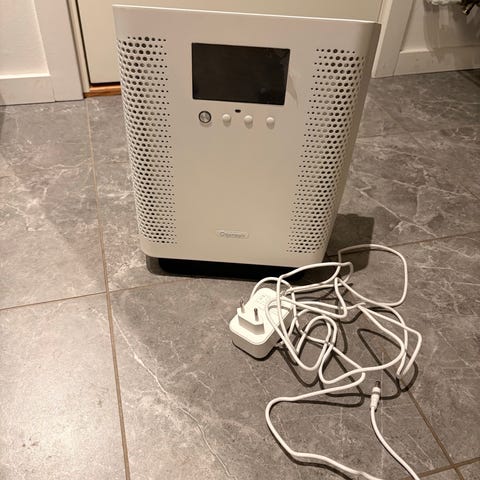 Ozoneair Purify 30 luftrenare med fjärr.Modell: P30 Input voltage: DC 24V 2A Power: 24W Size: 326 x 291 x 137 mm Weight: 2,7 kg.Tyvärr kartong å manuall ej kvar men jättelätt att använda.Jag gav 4700 nu kostar 4400nya.Denna använd fåtal ggr.Rensar luften från virus,pollen,damm,torr luft m.m.Bra rabatt som nyskick.Användes 2månader fåtal ggr va för pappa då han hade kol.Bara stått å ej använt sen dess.