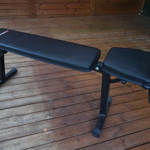 Kilberry träningsbänk inklusive flera viktskivor i olika storlekar. Bänken är utrustad med vadderad yta för komfort under träning. Passar för styrketräning och olika övningar med vikter.
