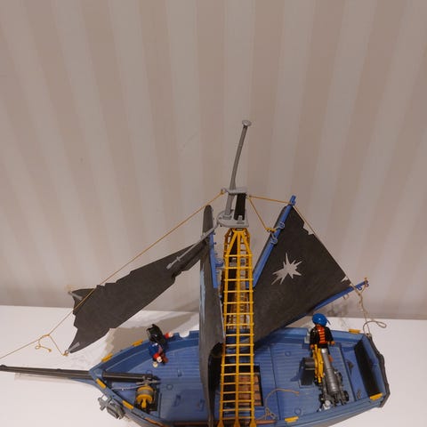 Playmobil piratskepp med figurer och tillbehör. Pris 400 kr. Kan hämtas I Sollentuna. Ej skickas.