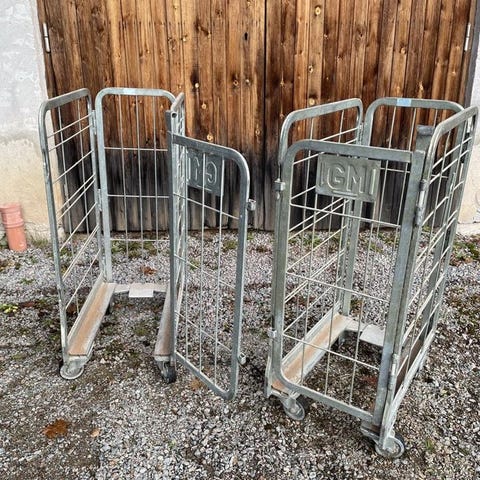 Vedhäckar med plastbotten. Perfekt att förvara ved i och lätt att flytta med traktor.