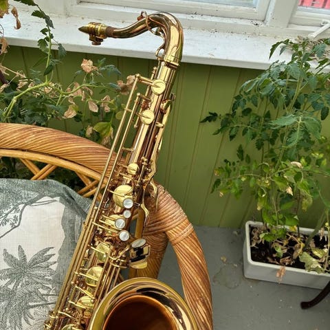 Golden age saxofon i bra skick. Foto skickas vid intresse. Tät och utan skador på metallen.