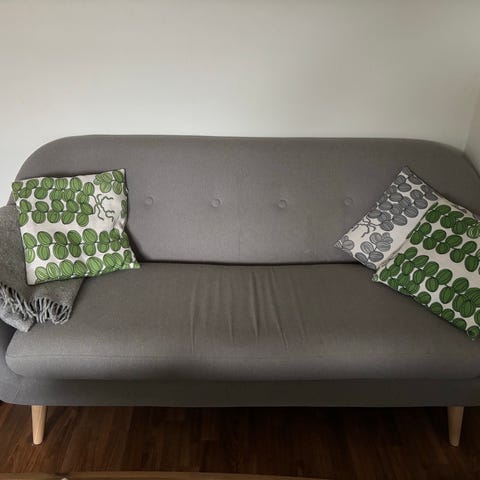 2-sitsig ektorp soffa från ikea säljes. Köpt för knappt ett år sedan. Finns 2 olika överdrag, den på bilden + vitt som ingår. Går att tvätta i tvättmaskin. Snabb och smidig affär prioriteras