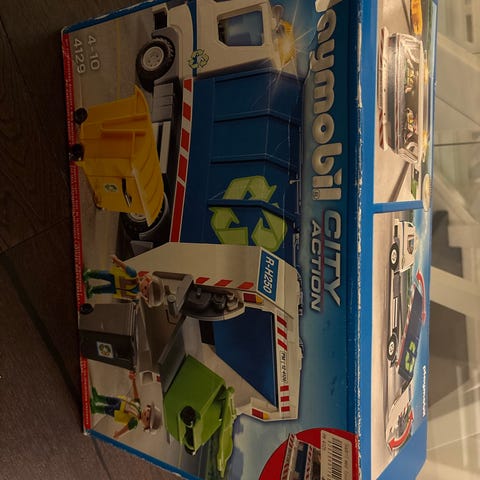 Playmobil City Action sopbil med tillbehör inklusive sopkärl och figurer. Leksaken är utformad för barn och ingår i Playmobil City Action-serien.