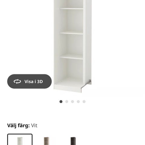 Respektive sektion är 44cm bred, den öppna sektionen med klädstång är 74cm. Det ger en totalbredd om ca 206cm. Djupet är ca 55cm. Höjden är 174cm.