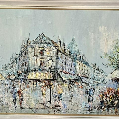 Oidentifierad oljemålning stadsmotiv i träram