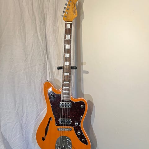 Den är i mycket bra skick för sin ålder men har lite smårepor i lacken samt att toppen på huvudet har fått sig en liten smäll som är så vanligt på pointy-headstocks (se sista bilden). Men i övrigt är den i riktigt bra skick som jag hoppas ni ser på bilderna.