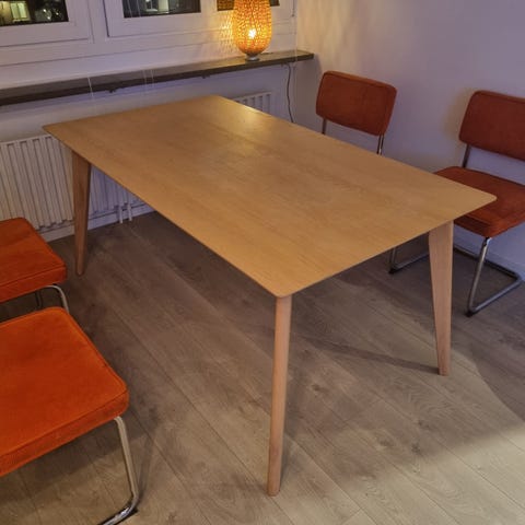 Bordet har en slitstark träskiva och passar perfekt för större familjer eller middagar.