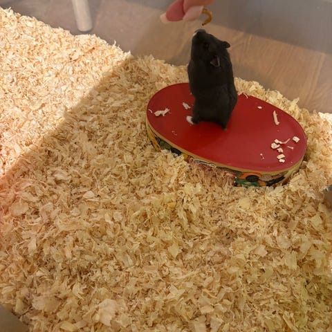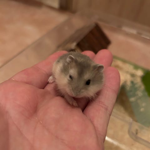 Behöver omplacera min hamster Gunnar. Han är runt 10 månader och helt underbar. Han kan bli klappad och inga problem med gosa med. Han älskar gå på äventyr och kolla runt. Inte haft så mycket tid med han på sistone så man måste nog umgås med han mer för han ska bli lika van igen vid en. Men inga problem att handmata han tar direkt brukar även lägga frön i handen som han klättrar upp och tar.