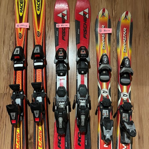 Roliga Carvingskidor för barn. Lätta att justera i bindningen efter pjäxan. Normalt slitage, inga defekter.