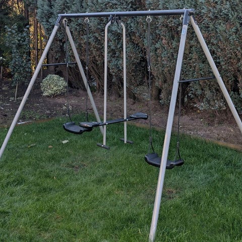 Säljer gungställning med stålram och 3 gungor. 2 bräd gungor och 1 kompis gunga ingår.
