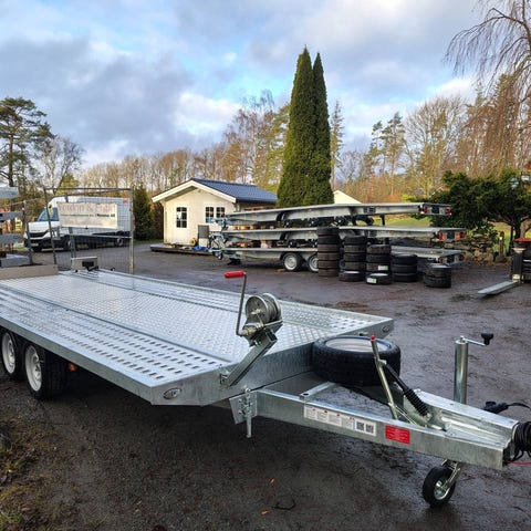 Biltransport eller multisläp Niewiadow Jupiter NM 5521 bil- entreprenad- eller multisläp med många användningsområden. Flakyta på 558 x 210 cm. Körbanor i kraftig aluminium (LOHR) samt aluminiumdurk i mitten. Ramper i stål förvaras i fack under flaket. Hjul 1955013C samt axlar och drag från Al-Ko borgar för trygg och stabil körning. Besiktningsfri i fyra år efter första ibruktagande.