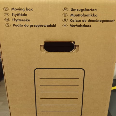 Låda i wellpapp för smidig packning av lampa eller kristallkrona inkl upphängningsstag. Se https://www.ztorage.se/flyttmaterial/lamplada/