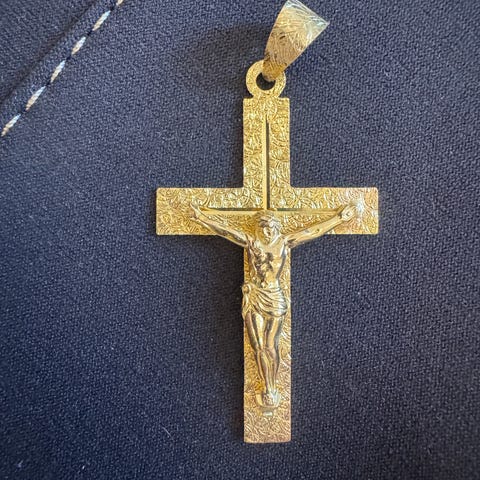Nu säljer vi 1st handgjord Guldkors i 18K Gul Guld 8g 3cm