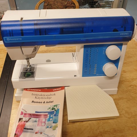 Säljer/ Husqvarna Prisma 945 symaskin med bruksanvisning, tillbehör och tillbehörslåda. Inkluderar även fotpedal och förvaringslåda.