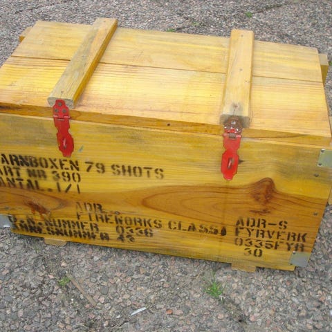 Äldre Militär Transport/ Förvarings låda i trä från mitten av 1900-Talet. Tre-Kronor Markör som markerar att det är en officiell Svensk militär låda.