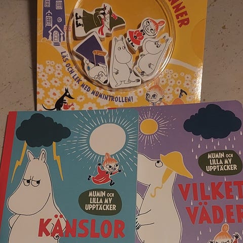 Fin muminbok med text och bilder, fint skick. 50 kr. Skickas ej, finns i Huddinge. Katt finns i hemmet.