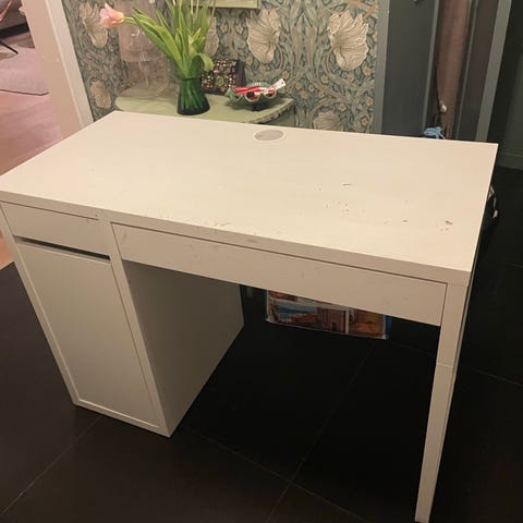 Vitt skrivbord från Ikea i modellen Galant.