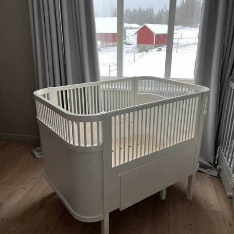 Bilder visar sängen i juniorläge. Observera att spjälsängsskyddet är anpassat för montering som just spjälsäng. En helt ny monteringssats medföljer, beställd direkt från Sebra, då den gamla förlorats.