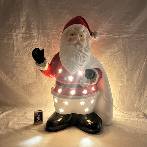 Tomte från 50-talet som nickar och rör på sig . Man drar upp den .