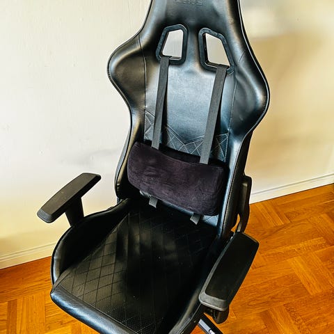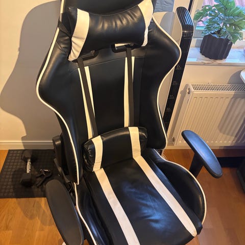 Piranha Gamingstol med svart konstläder. Stolen har justerbara armstöd och nackstöd för ökad komfort under längre användning. Designad för att ge stöd vid spel och kontorsarbete.