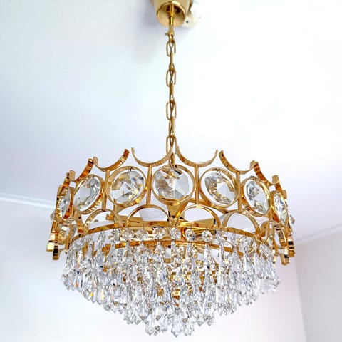 Gammal vacker kristallplafond / kristallkrona i mässing - 1900-tal