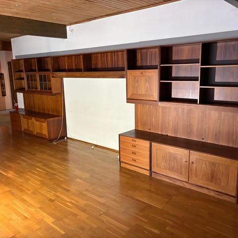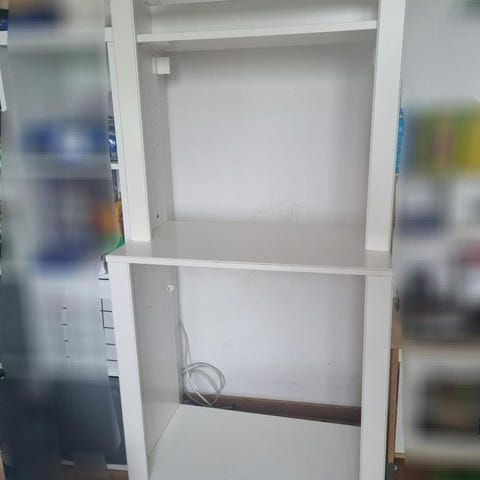 Bokhylla med glasbord och förvaring skänkes