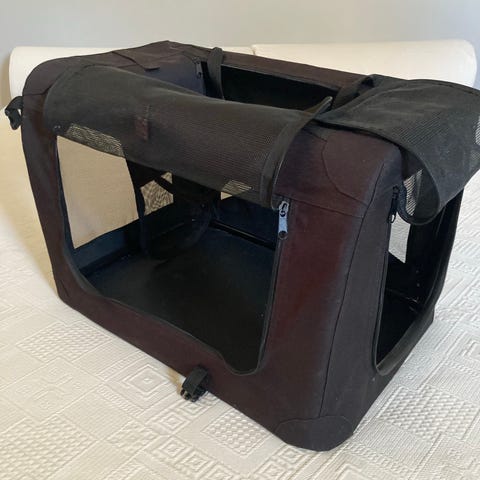 Vadderad väska med mjukt foder inuti. Handtag och koppel.