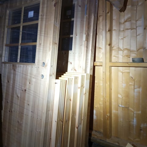 Trädörr med glaspartier (plast) i trä 82x202cm