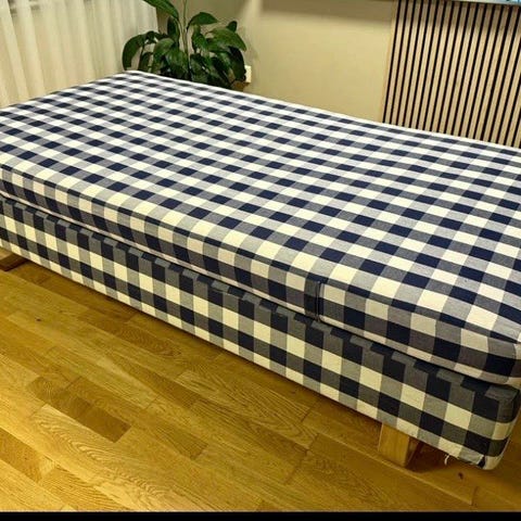 Säljer en skön säng med fin komfort. Jag har haft den drygt ett år. Dessförinnan var den gästsäng hos mina föräldrar. Bäddmadrassen har några fläckar på ena sidan som jag försökt rengöra. Går säkert att få bort. Sängen är rengjord enligt fabrikens rekommendationer. Den står på medar av ek. Den är ganska tung och jag kan inte erbjuda bärhjälp. Kommer från rök- och djurfritt hem.