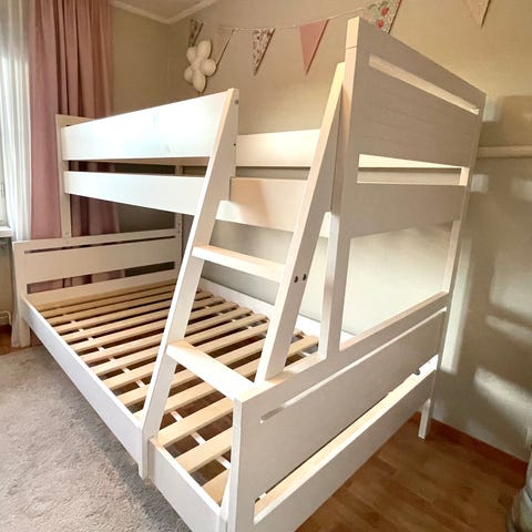 Våningssäng Mydal från IKEA i bra skick med fräscha madrasser samt madrasskydd.