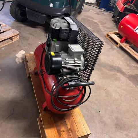 Solid professionell långsamtgående verkstadskompressor på 5,5 hk. Dubbeltank,
