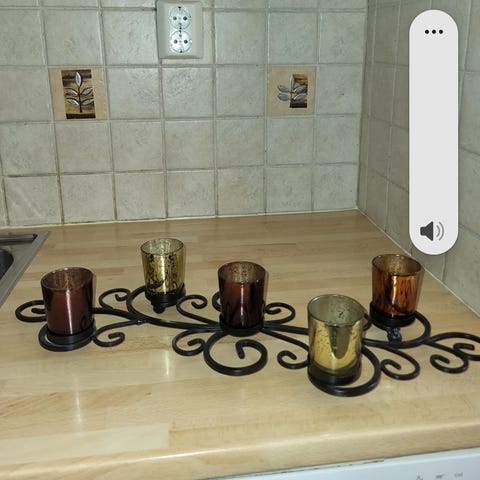 Äldre röd gammaldags träljusstake från Svensk Hemslöjd. En ljushållare är lite svärtad. Inte så synligt när man har ljus i och påverkar inte funktionen. I övrigt i fint skick.